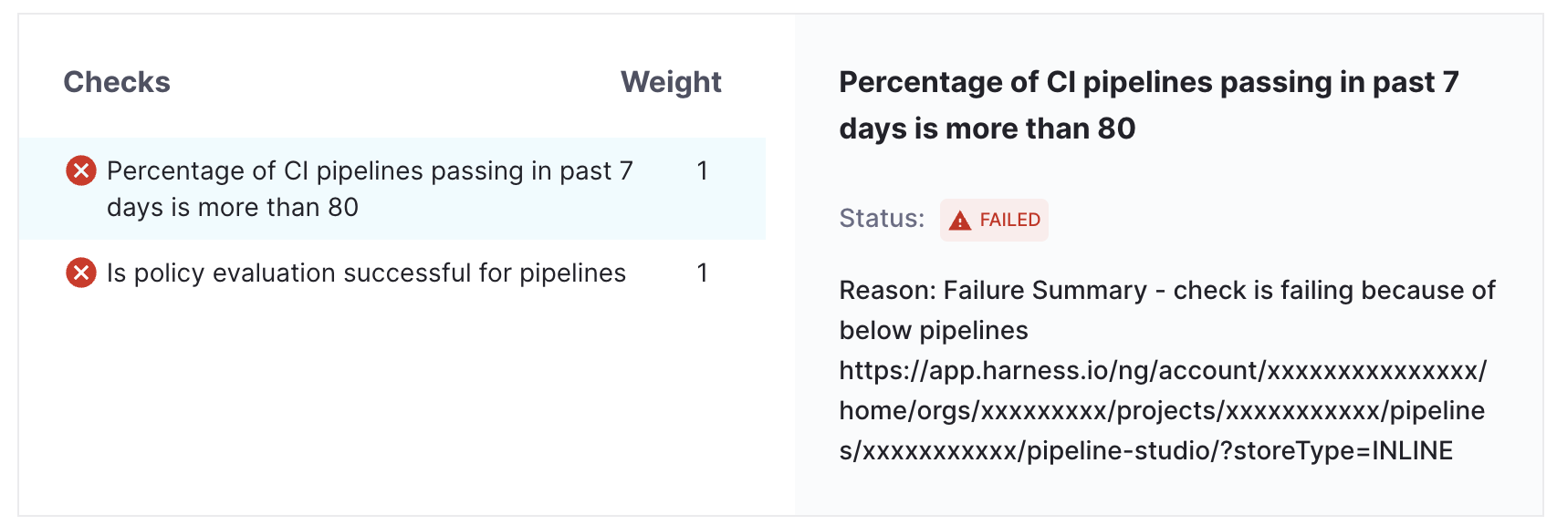 or from additional properties ingested using APIs as input variable(JEXL format) in Scorecard Checks. For example, <+metadata.testCoverageScore>