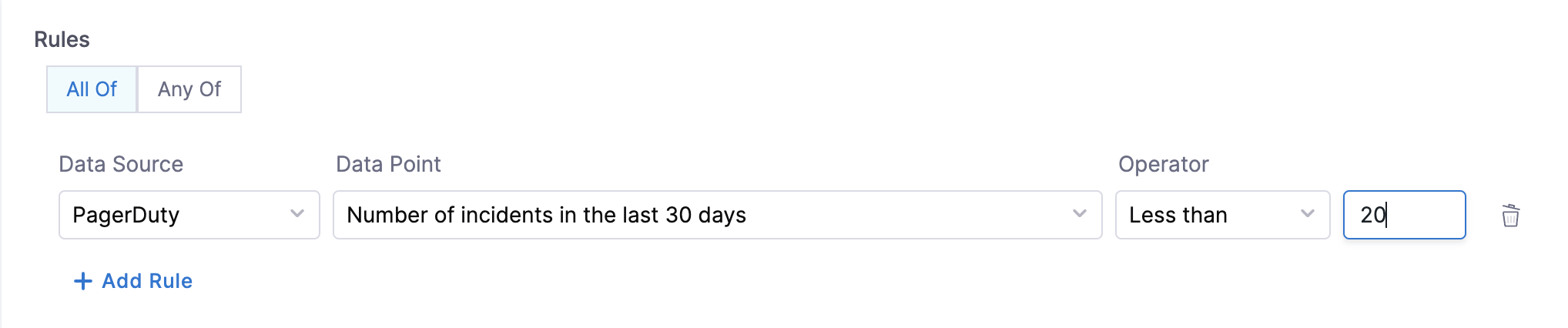 - Is on-call Set - This data point can be used for creating rules that will check if the on-call is set for a given service.